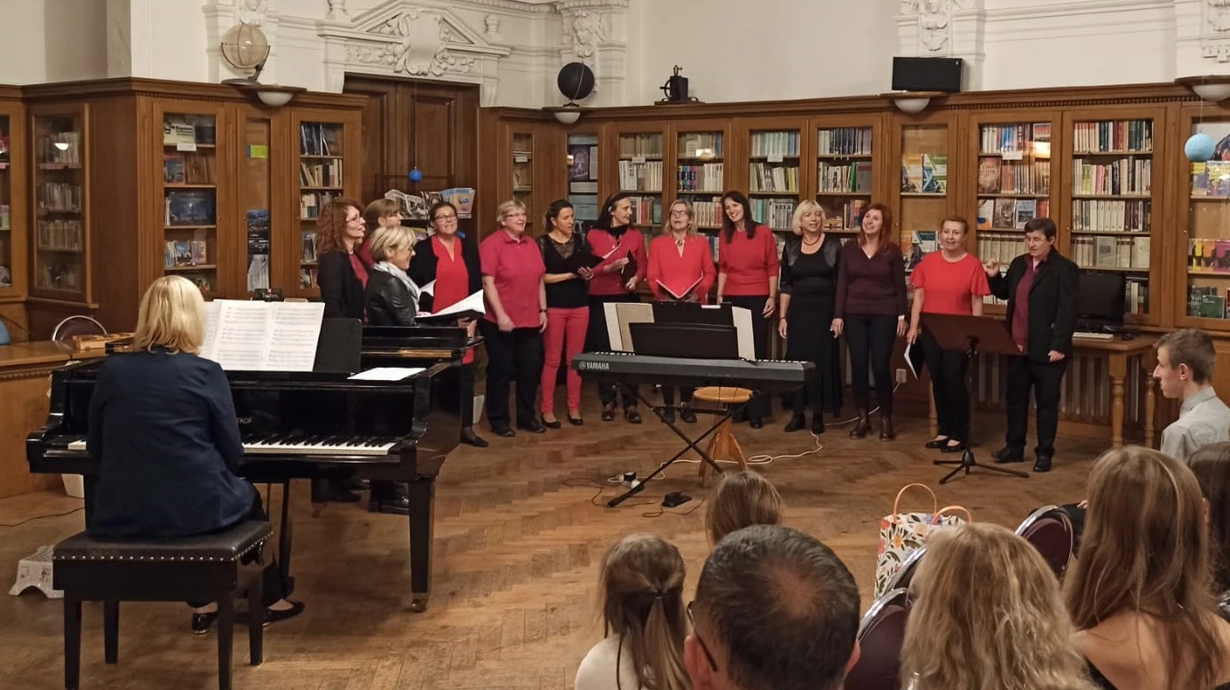 V aule Gymnázia Teplice se ve čtvrtek 19.10.2023 uskutečnila klavírní přehrávka žáků Markéty Loskotové. Ta byla proložena i pěveckými vystoupeními jednotlivců. Na závěr rozmanitých a velmi pěkně provedených skladeb jsme vystoupily i my jako přizvaní hosté. Připravily jsme si skladby - Studánko stříbrná, Nejkrásnější den a Klidná jako voda. Byla to milá odměna pro všechny přítomné, někteří si s námi rádi zazpívali.
