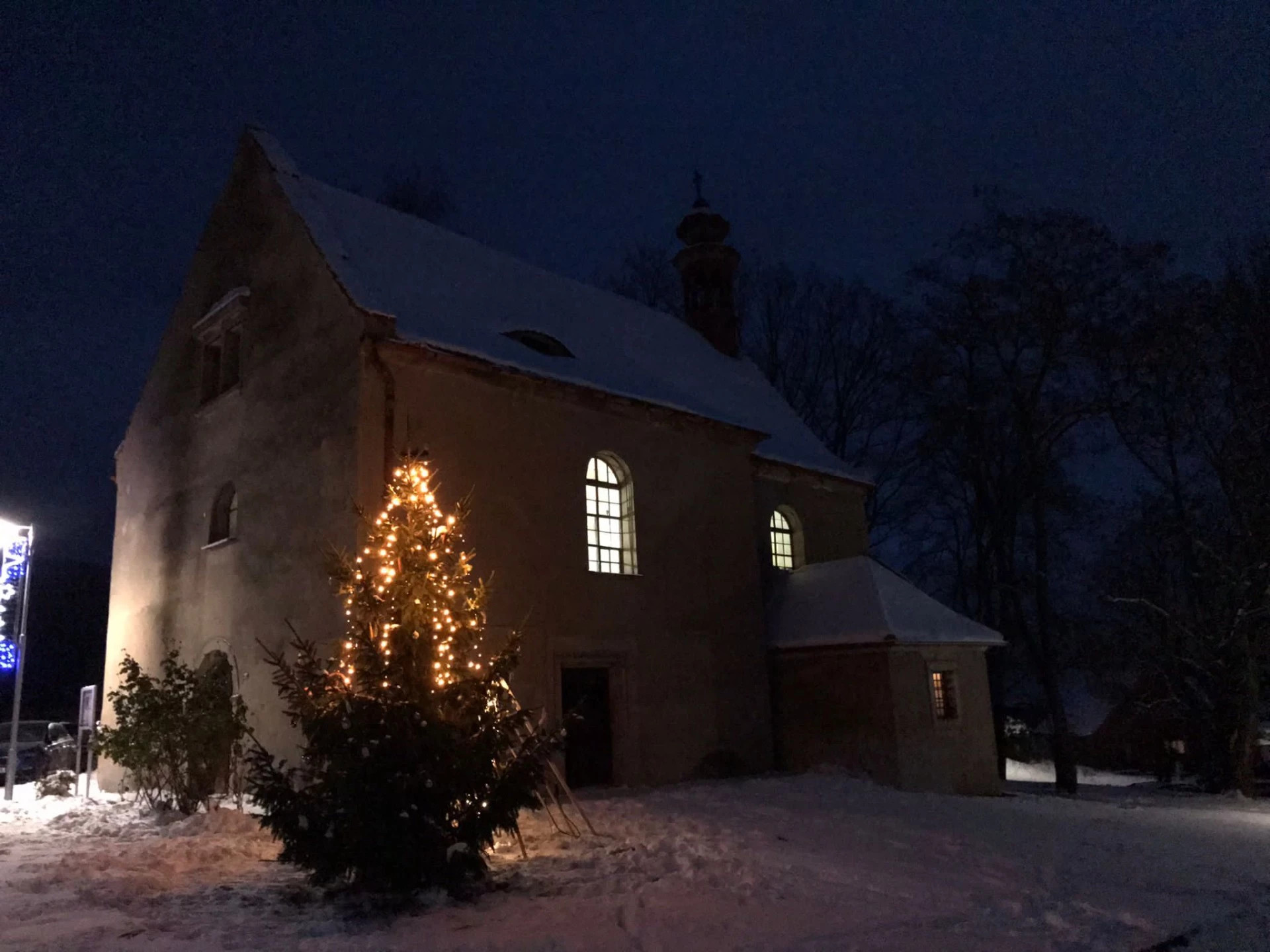 V podvečerních hodinách jsme vyrazily zasněženou krajinou do Medvědic. Již potřetí jsme připravily koncert na první adventní neděli v kostele sv. Kateřiny. Spolu s námi byl přizván Třebenický ženský sbor.