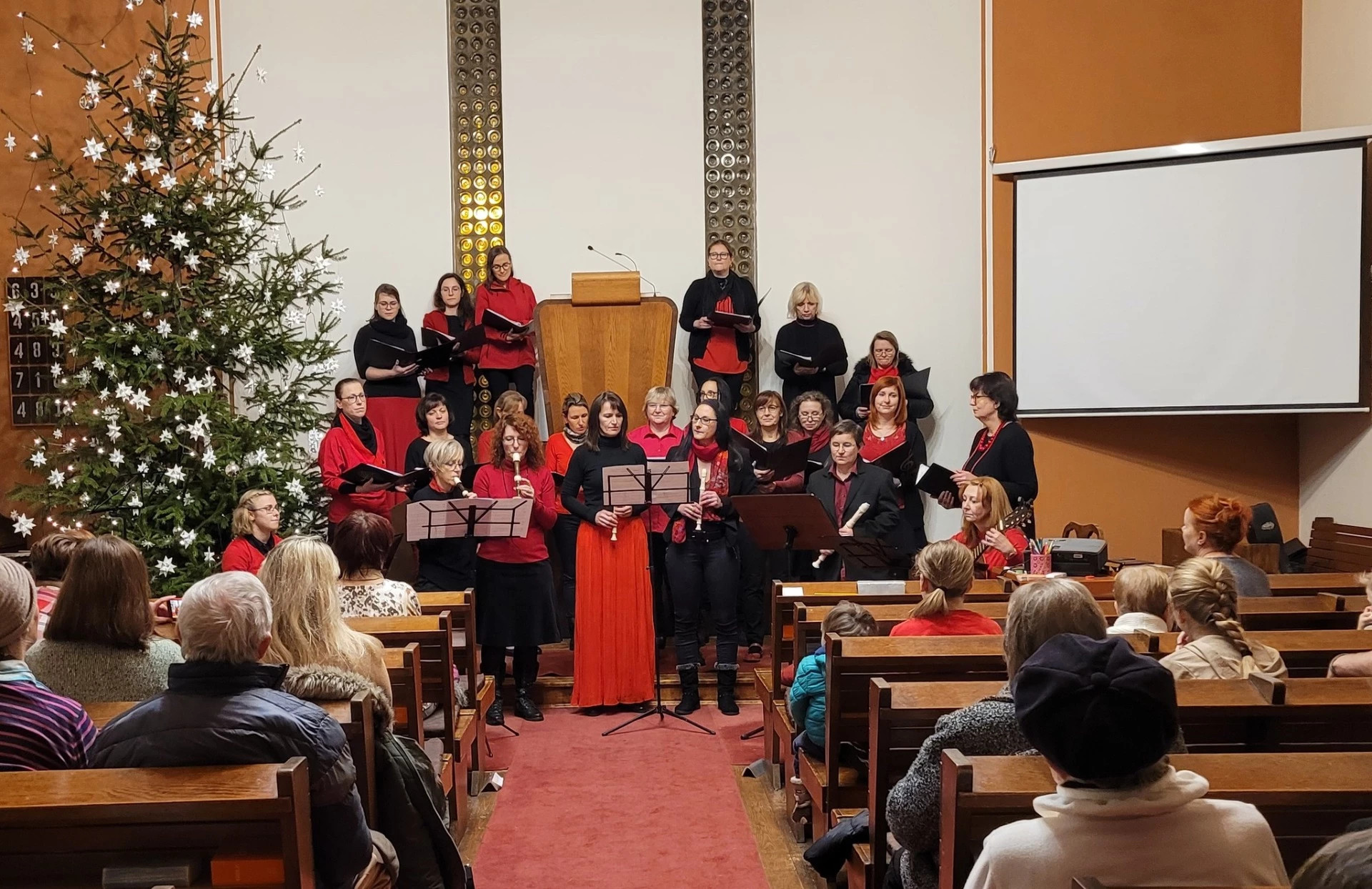 13. prosince jste se s námi mohli přijít naladit na vánoční atmosféru do kostela Českobratrské církve evangelické ve Sládkově ulici. Na úvod jsme zazpívaly něco málo z lidovek, pak už následovaly vánoční písničky jako Z archy vypuštěný holoubku, Zpěv andělů, ukrajinská Ščedryk, V půlnoční hodinu a další. Téměř 75 minutové pásmo jsme zakončily zpěvem nejznámějších koled, k němuž se připojilo i publikum.