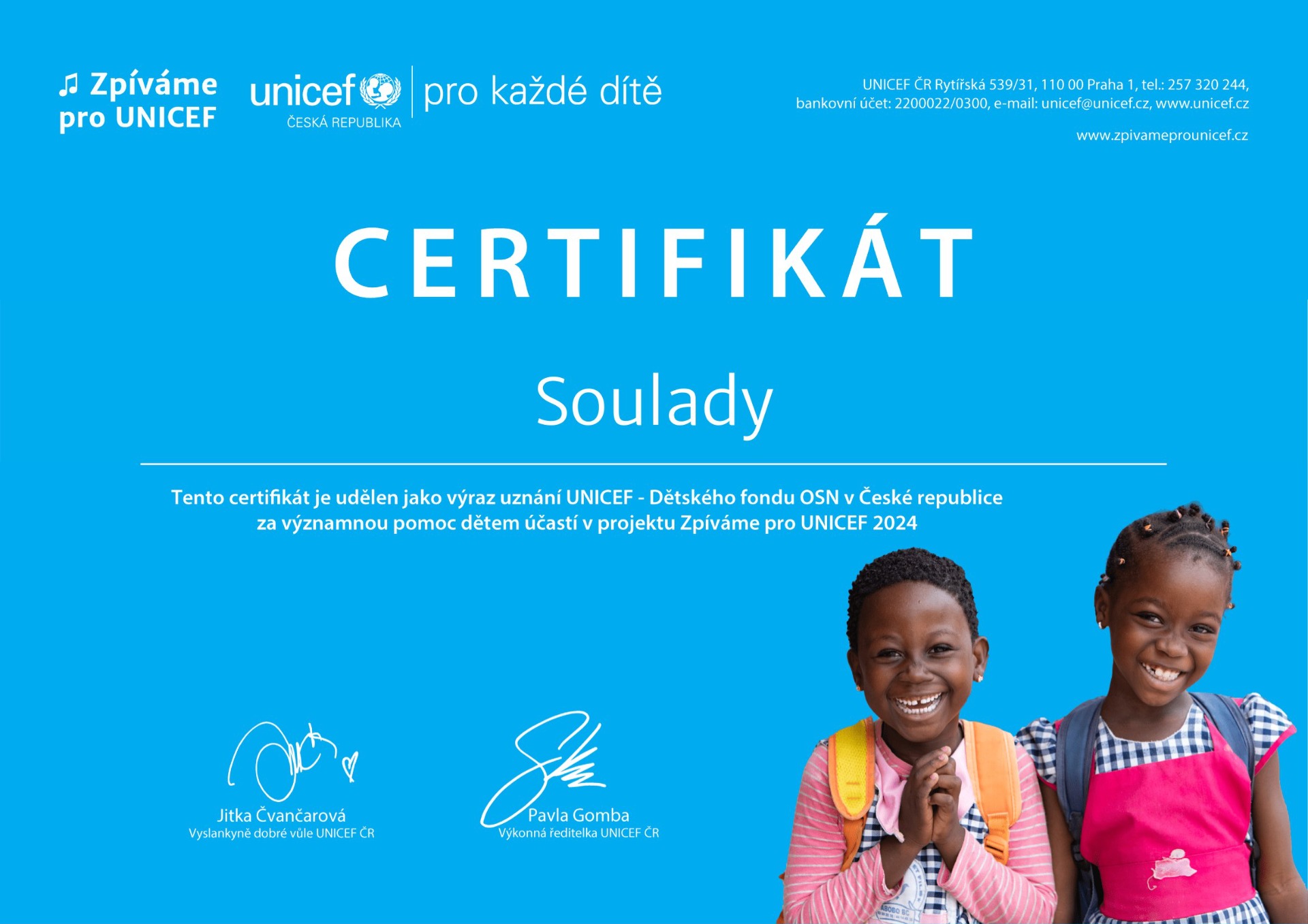 Koncert se uskutečnil v Kostele sv. Jana Křtitele. Zazpívaly teplické sbory: Brixiho komorní soubor, Krušnohorský pěvecký sbor a naše Soulady. Pozvání přijal i Kvítek Louny. Krásné muzikantské setkání vydělalo pro UNICEF - program vzdělávání 3 764 Kč. Děkujeme účastníkům i divákům za příjemný kulturní a charitativní počin.